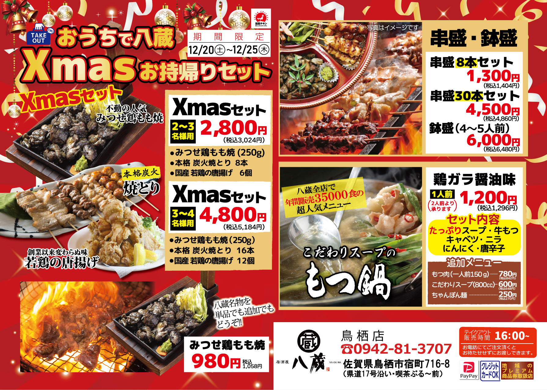 居酒屋八蔵鳥栖店「クリスマスお持ち帰りセットのご案内」