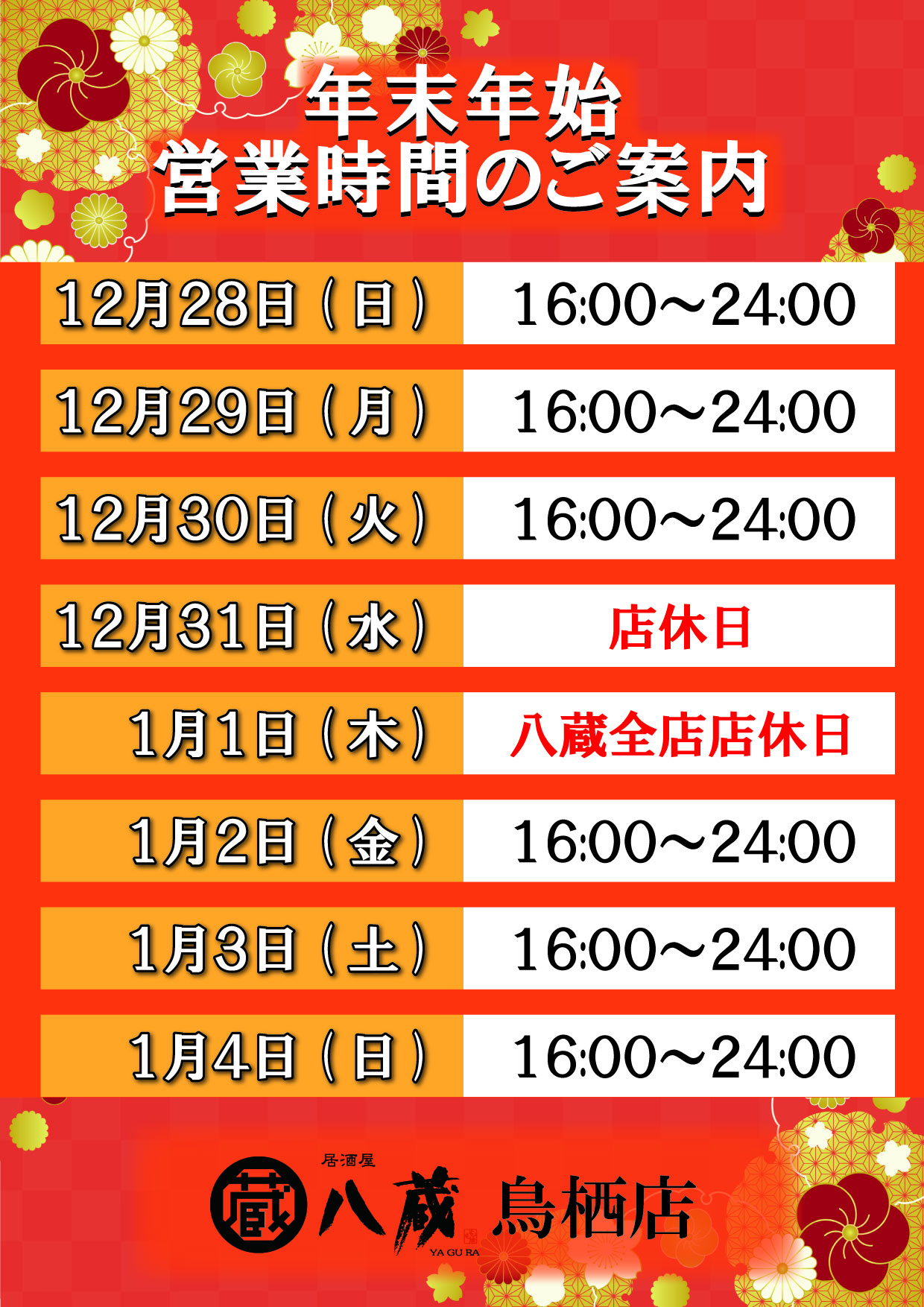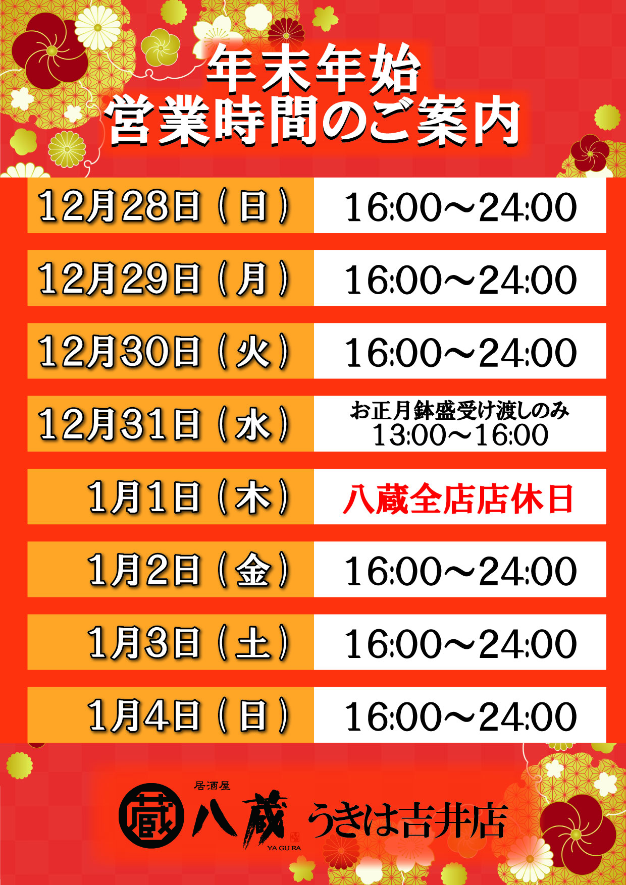 2025.12.26八蔵「年末年始営業のご案内」