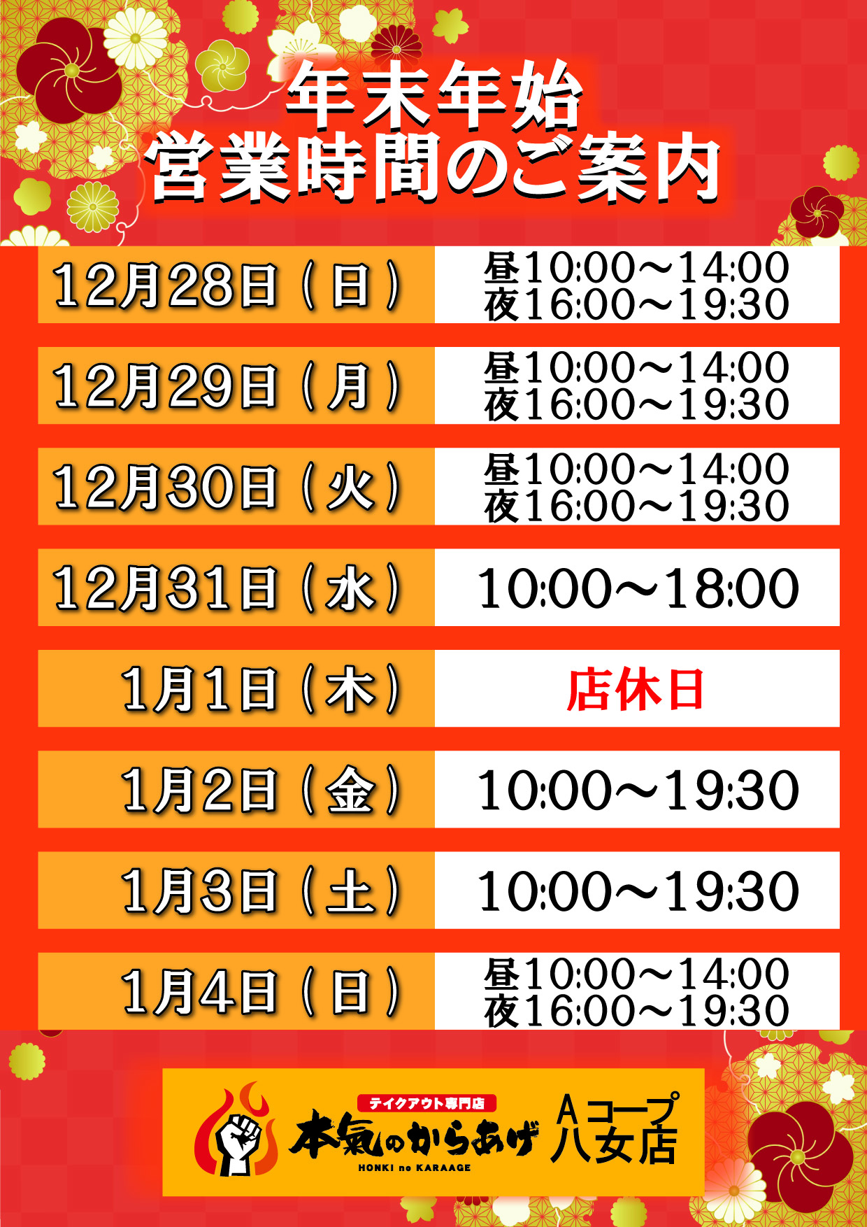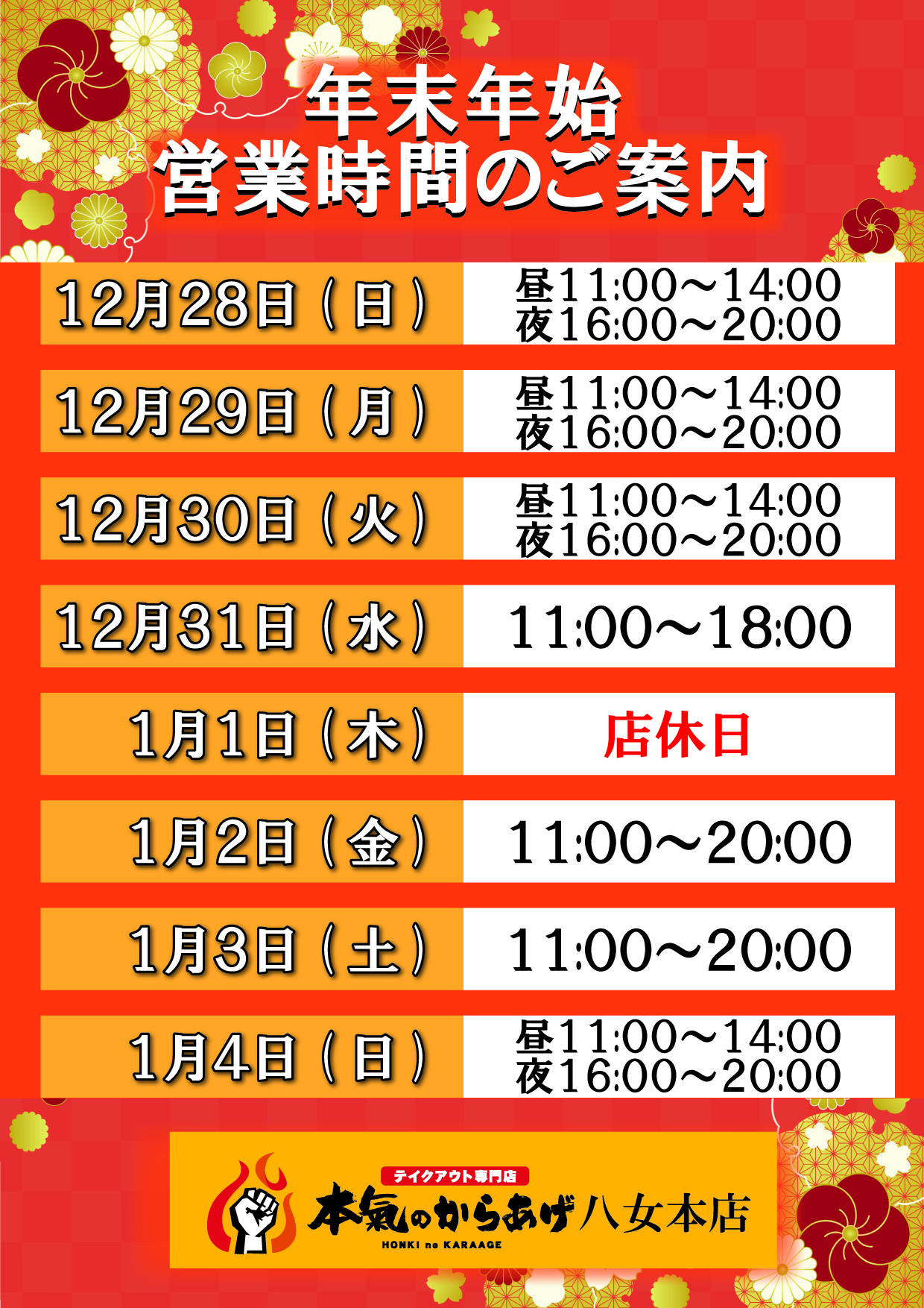 2025.12.26本氣のからあげ「年末年始営業のご案内」